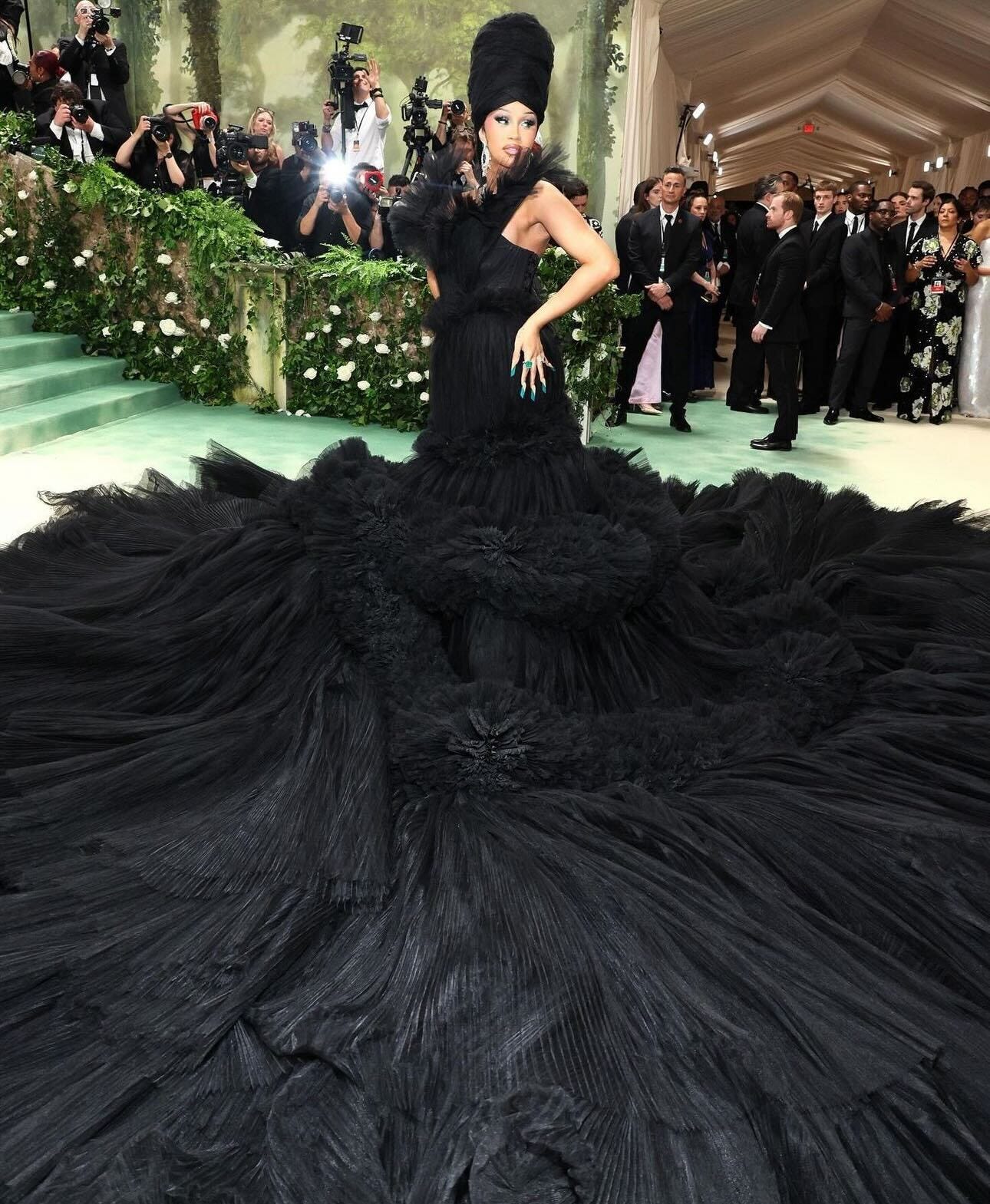 Cardi B - It takes a village with that look, but she took the whimsical out of the garden theme for a darker deeper look.